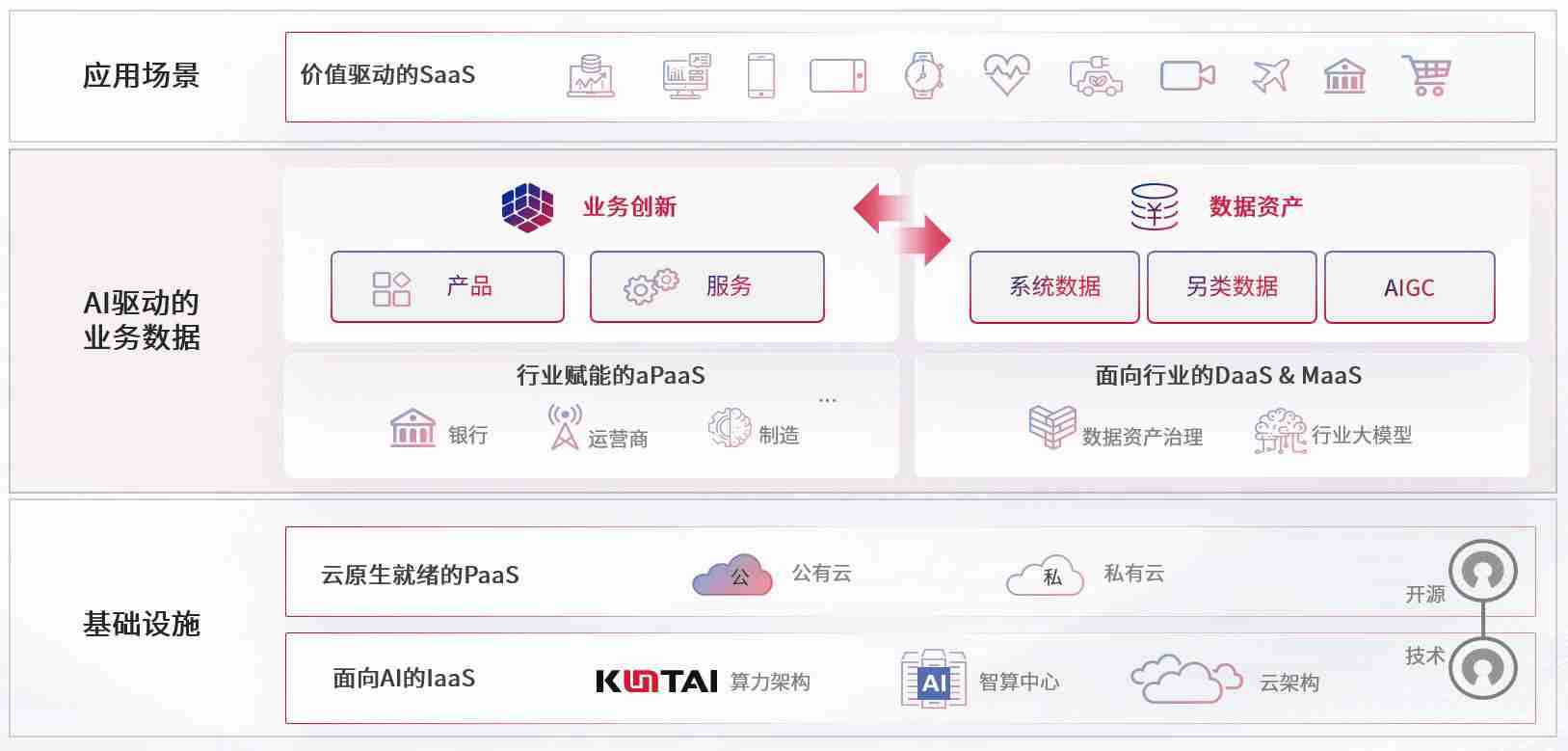 数字时代,,围绕企业数字化转型的关键要素,,,,z6com尊龙数码开创性的提出数云融合战略和技术体系框架,,,,着力在云原生、、、、数字原生、、、AI原生和信创产业上架构产品和服务能力,,,为处在不同数字化转型阶段的快消零售、、汽车、、、、金融、、、医疗、、、政企、、、、教育、、、、运营商等行业客户提供泛在的敏捷IT能力和融合的数据驱动能力,,构建跨界融合创新的数字业务场景和新业务模式,,,助力企业级客户建立面向未来的核心能力和竞争优势,,,全面推动社会的数字化、、智能化转型升级。。。